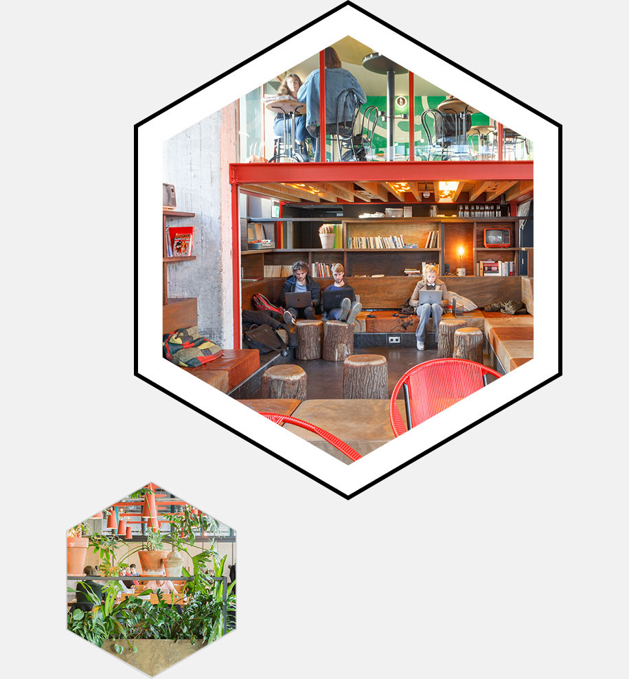 Volkshotel’s Wi-Fi is fast and free of charge. We offer a free co-working space where Amsterdammers and hotel guests sit side by side. For private business meetings you can book a 4 to 8 person cabin for €45 or €65 per hour.